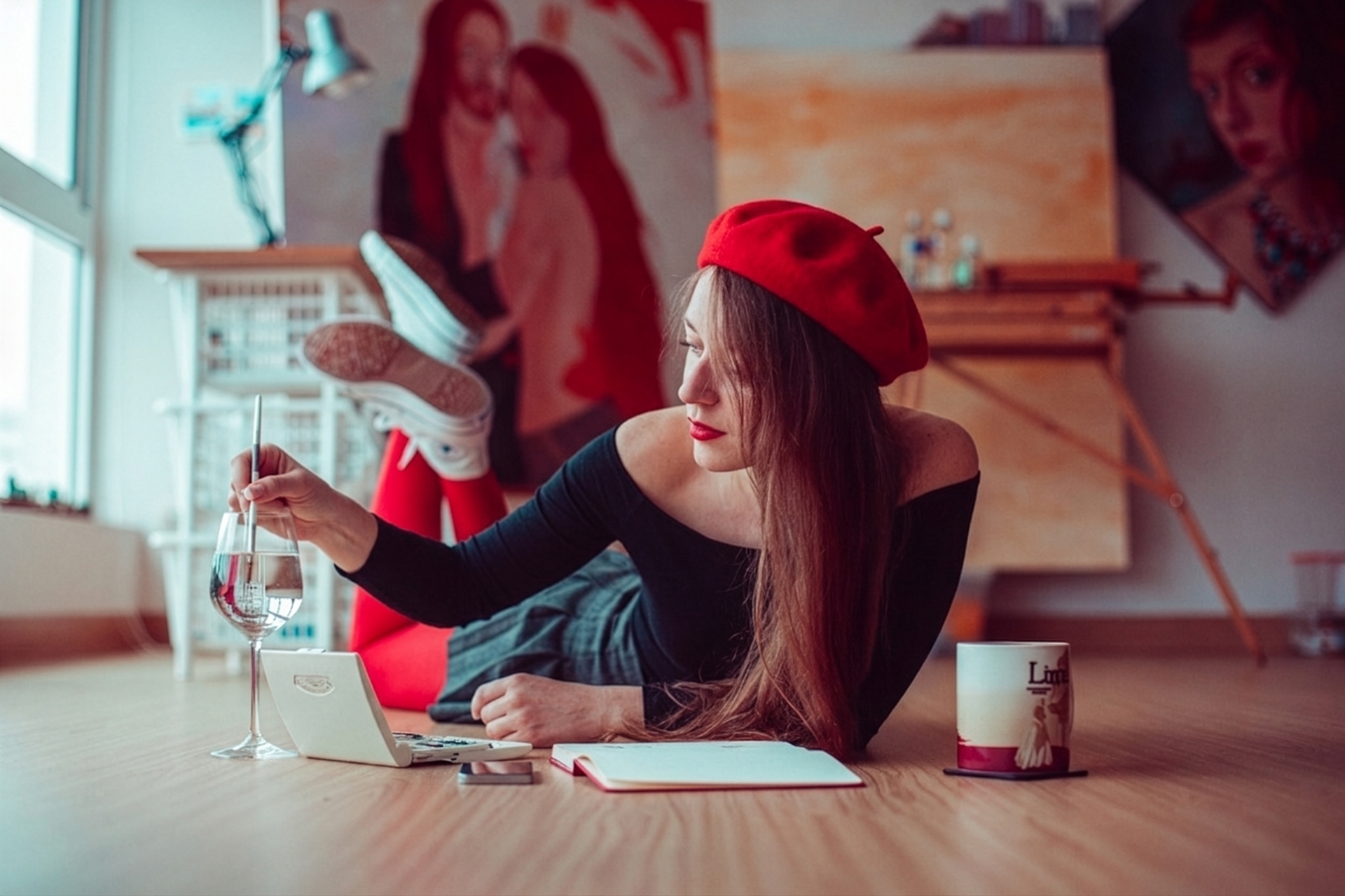 Yulia Katkova (b. 1986, Tashkent) is a Lima-based visual artist working across oil, watercolor, and acrylic. Her figurative paintings construct psychological environments where the female figure—often her own—operates as both subject and observer.