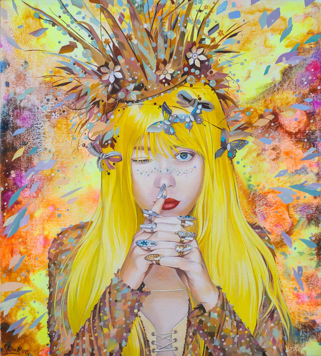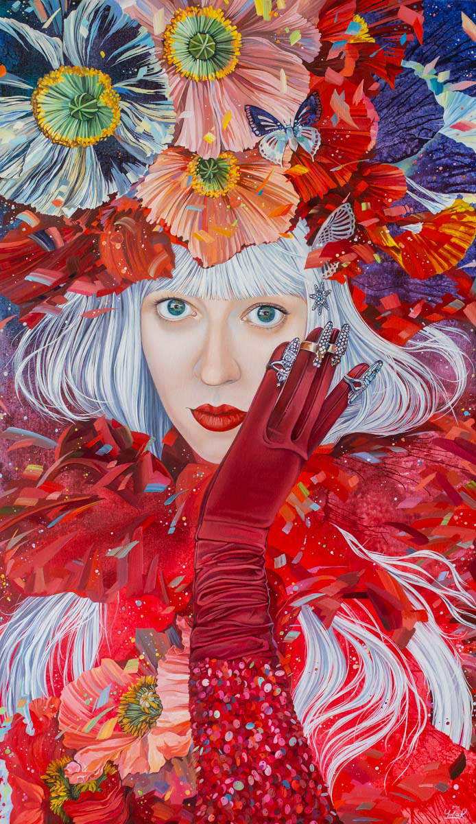 In this body of work, I also move away from strictly traditional painting techniques, experimenting with different materials in order to push beyond the familiar and the comfortable, opening the process to new visual possibilities.